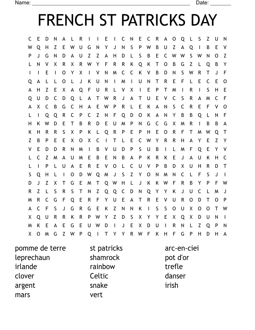FRENCH ST PATRICKS DAY Word Search WordMint