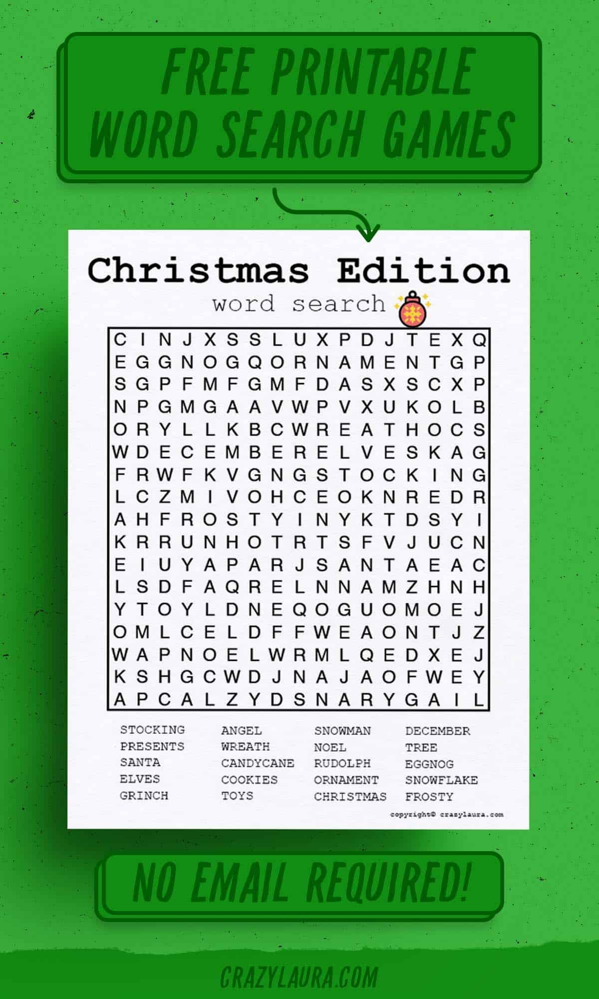 Free Christmas Word Search Printable PDF Game Sheets Crazy Laura