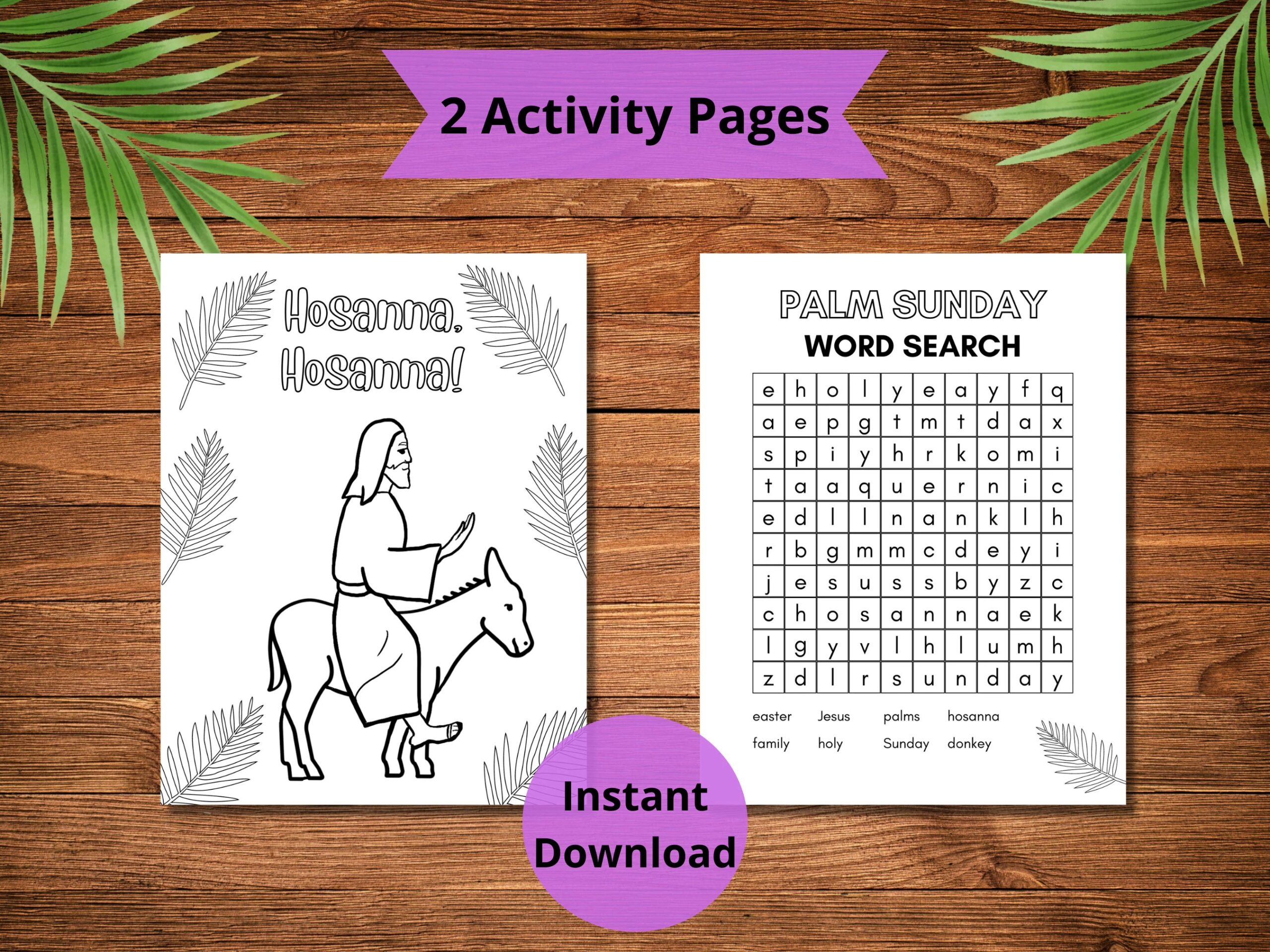 Palm Sunday Activity Worksheets Coloring Printable Word Search Easter Christian Catholic Classroom Homeschool Etsy