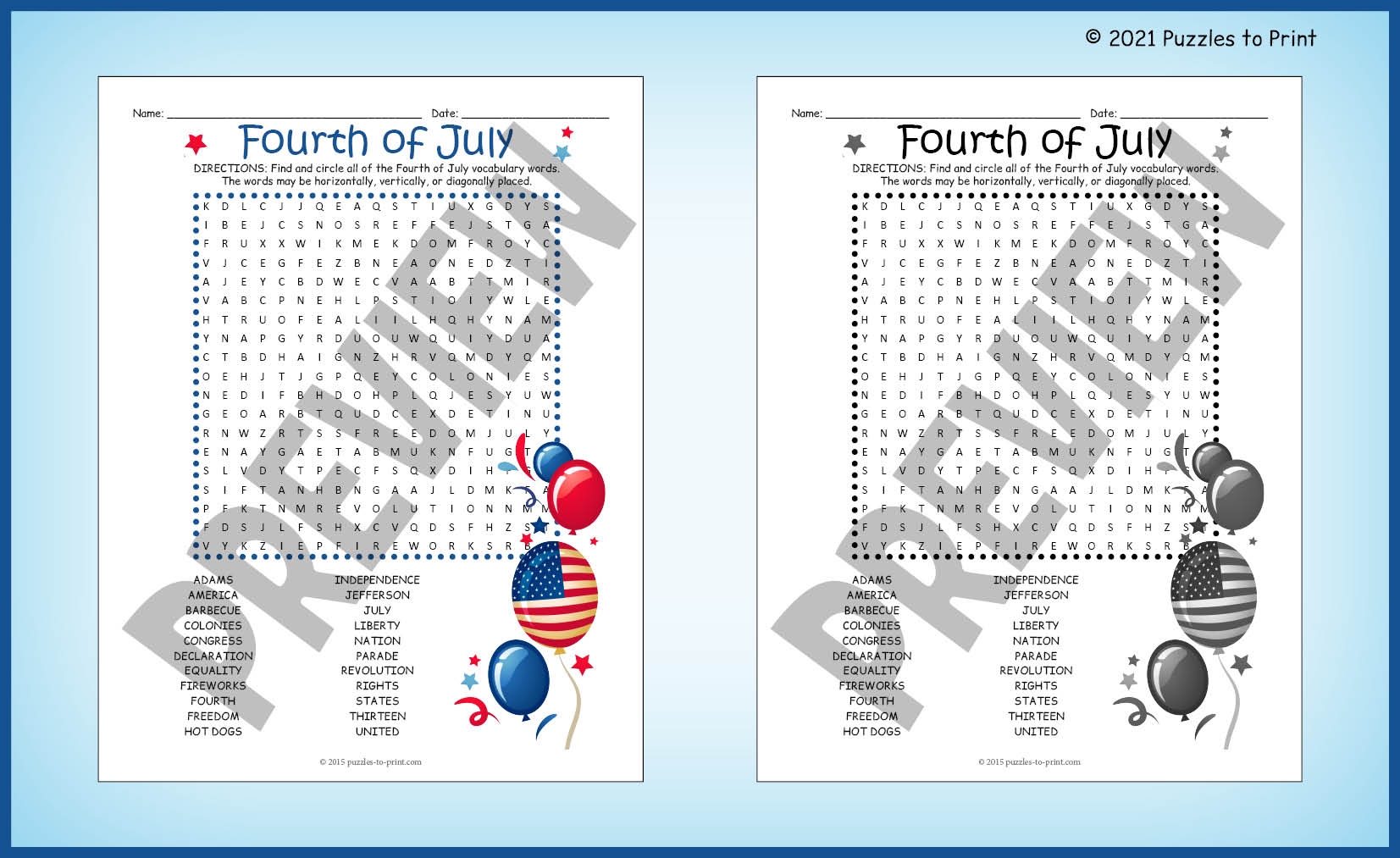 Whether you’re a puzzle pro or just looking for a fun activity to do with friends and family, printable word search puzzles are a fantastic choice for Fourth of July festivities. So why not give them a try this year and see how many words you can find!