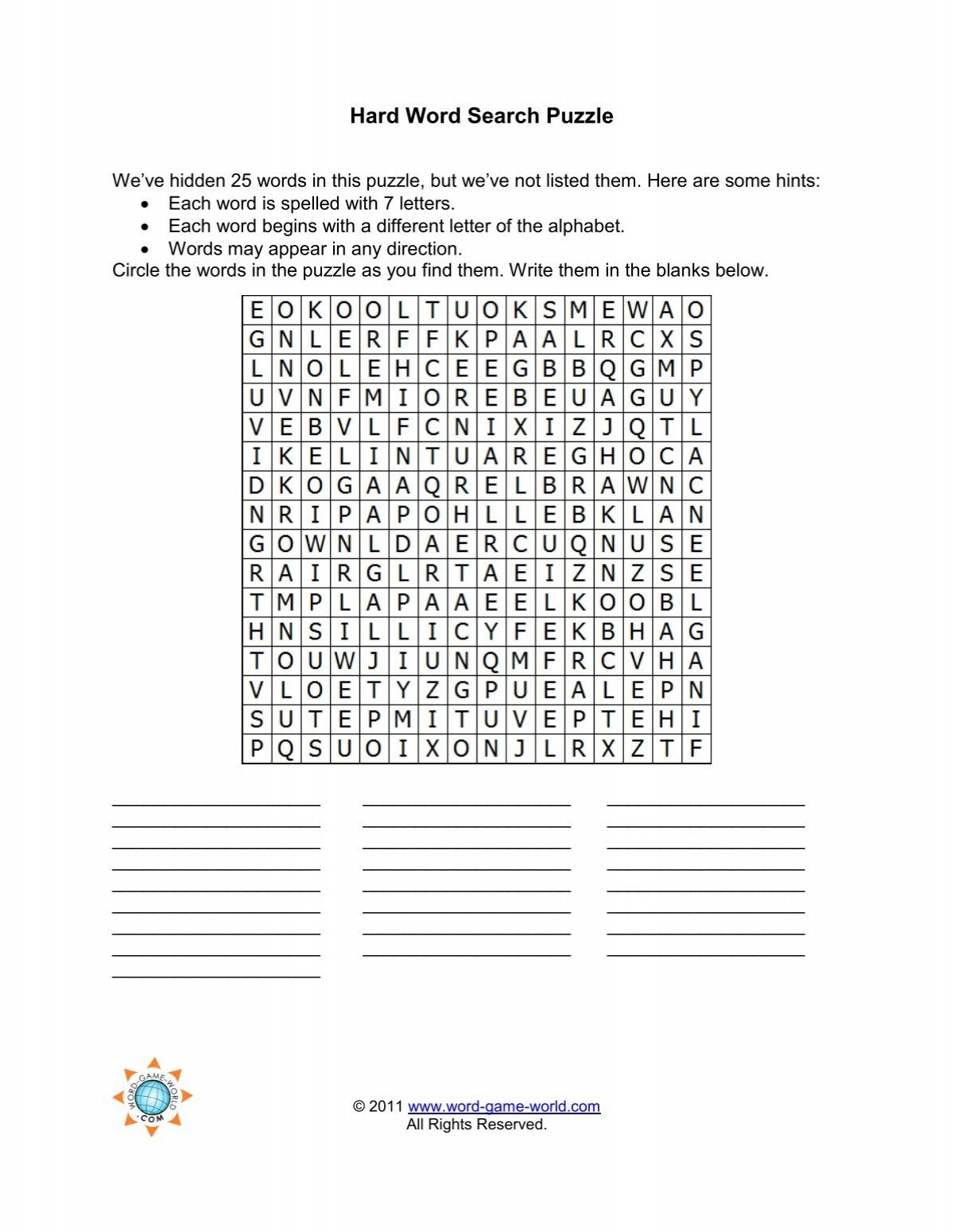 Printable Word Search Puzzles Hard