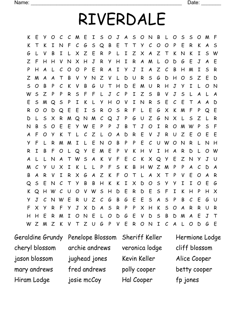 Printable Word Search Riverdale: Fun for Fans of All Ages