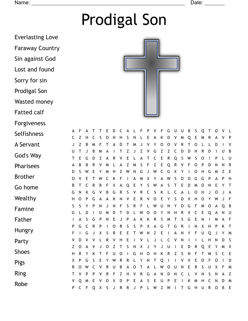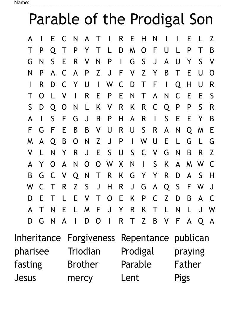 This printable puzzle contains key words and phrases related to the parable of the Prodigal Son, making it both entertaining and educational. You can work on it alone or with friends and family members for some quality bonding time.