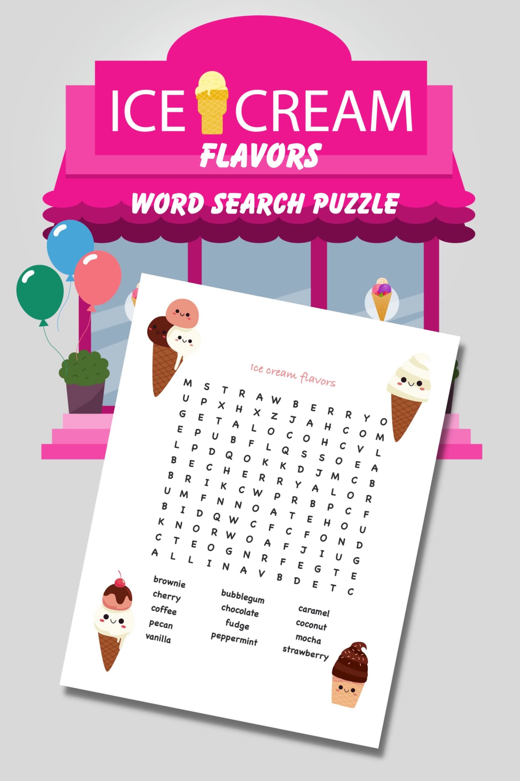 word search puzzle ice cream flavors printable party game senior activities brain teaser games