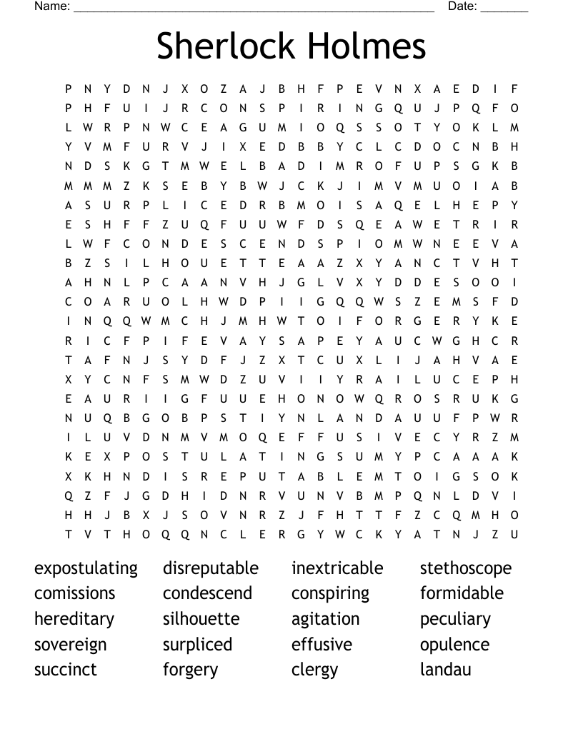 Sherlock Word Search And Puzzles Printable