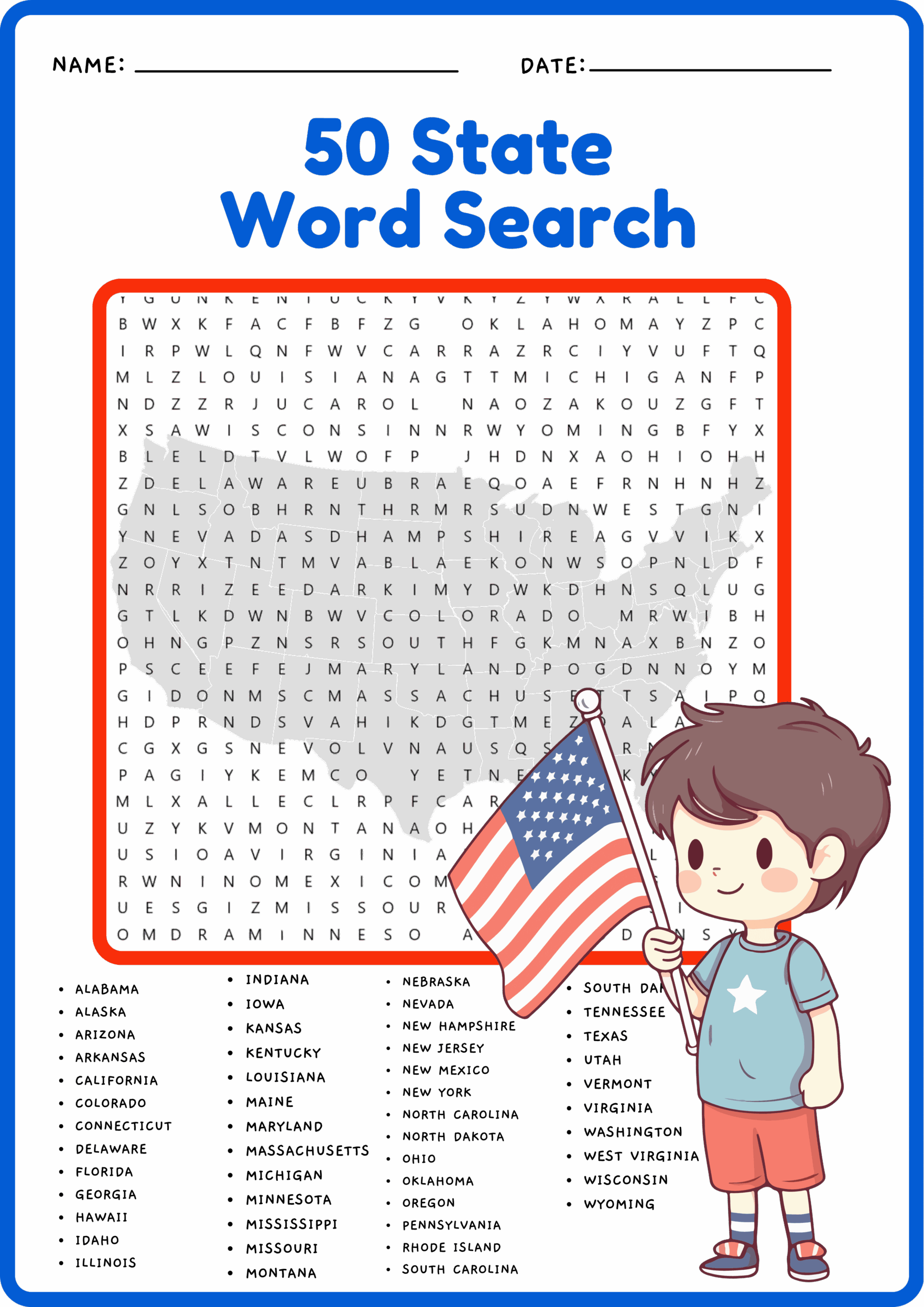 Looking for a fun and educational activity to do with your kids? Why not try out a States Word Search Printable? This engaging and interactive game will help your children learn all about the different states in the U.S. while having a blast!