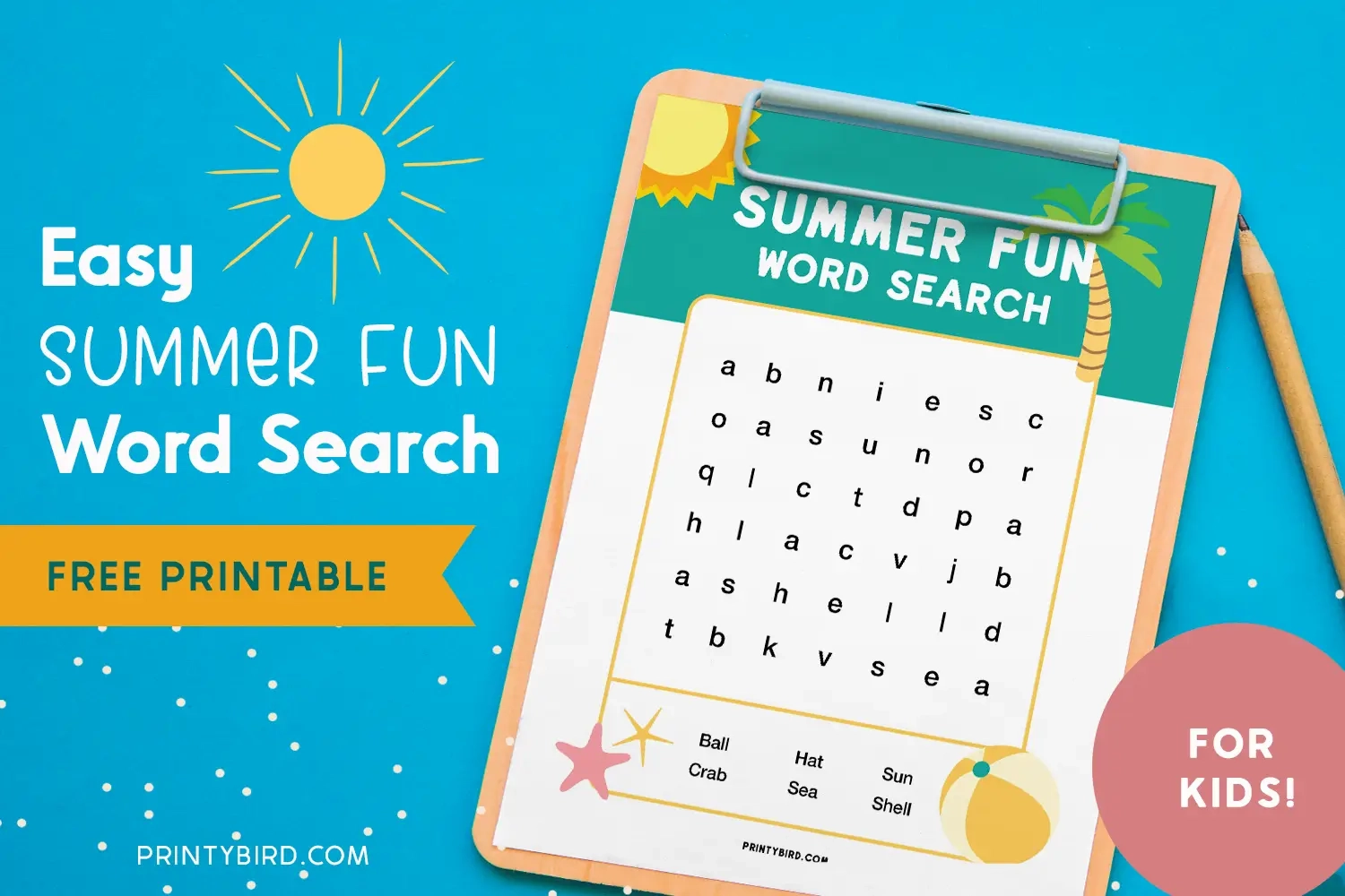 Word Search Printable Download Summer Fun For Kids Adults Babysitting Teaching Family Activity Etsy