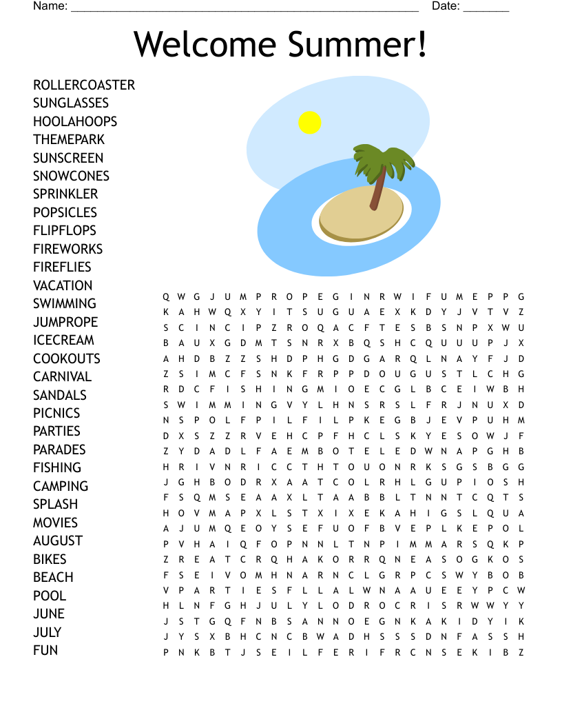 Printable word searches are easy to find online. Simply search for “summer word search printable middle school” and you’ll have plenty of options to choose from. You can even customize the word list to make it more challenging or tailored to your child’s interests.