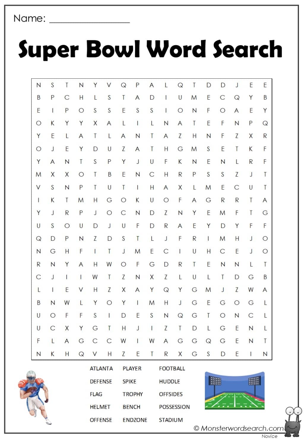 Super Bowl Word Search Printable