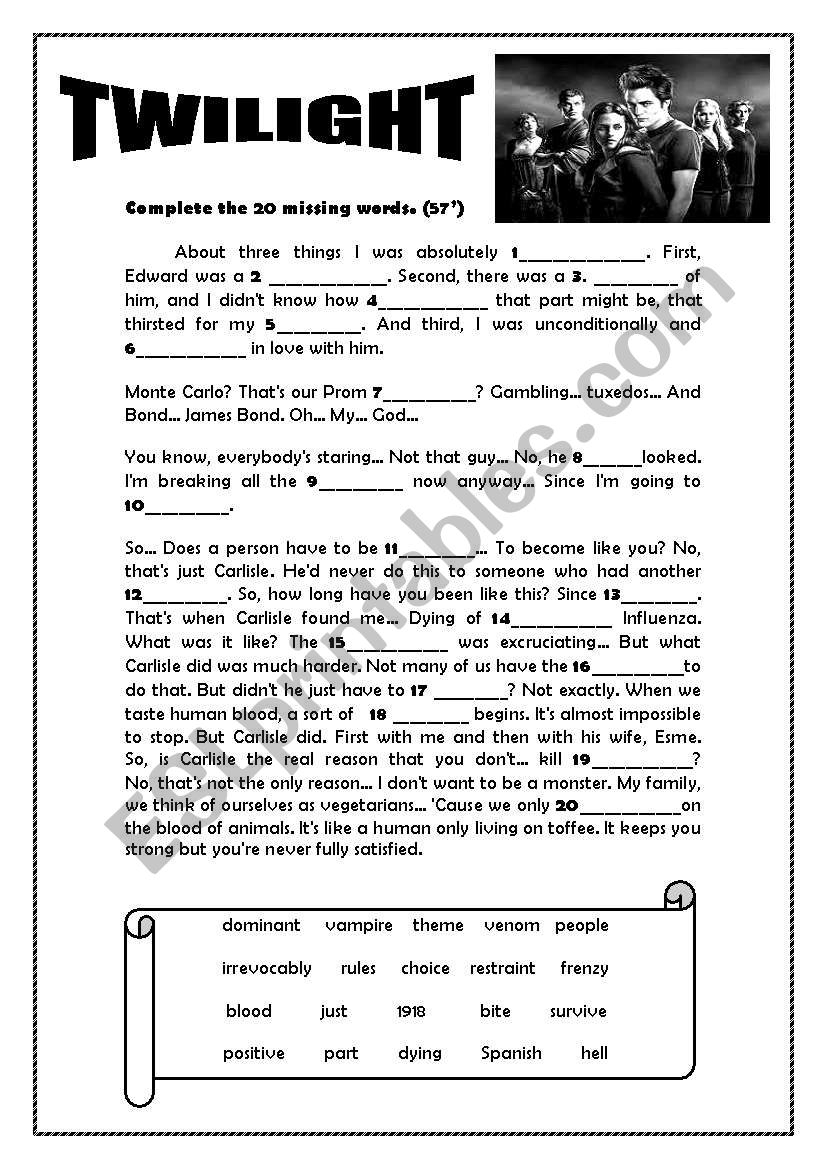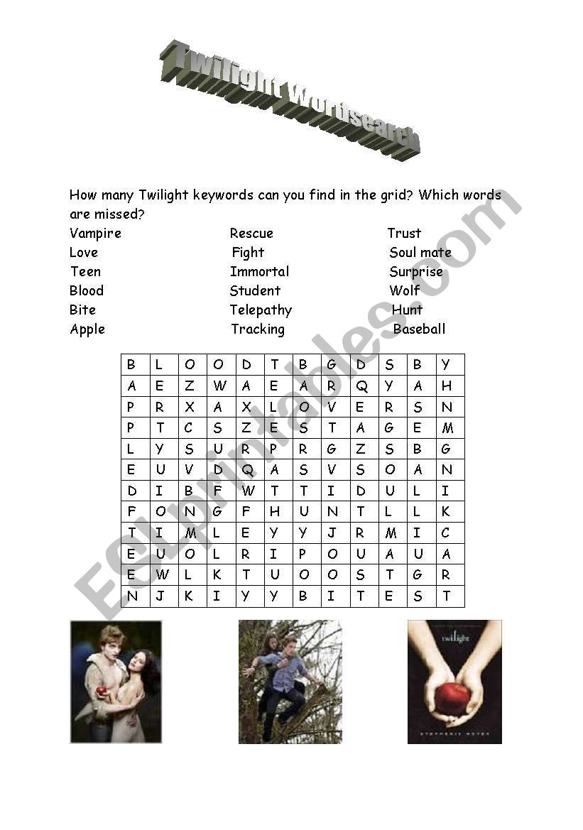 Twilight Wordsearch ESL Worksheet By Twin sister1