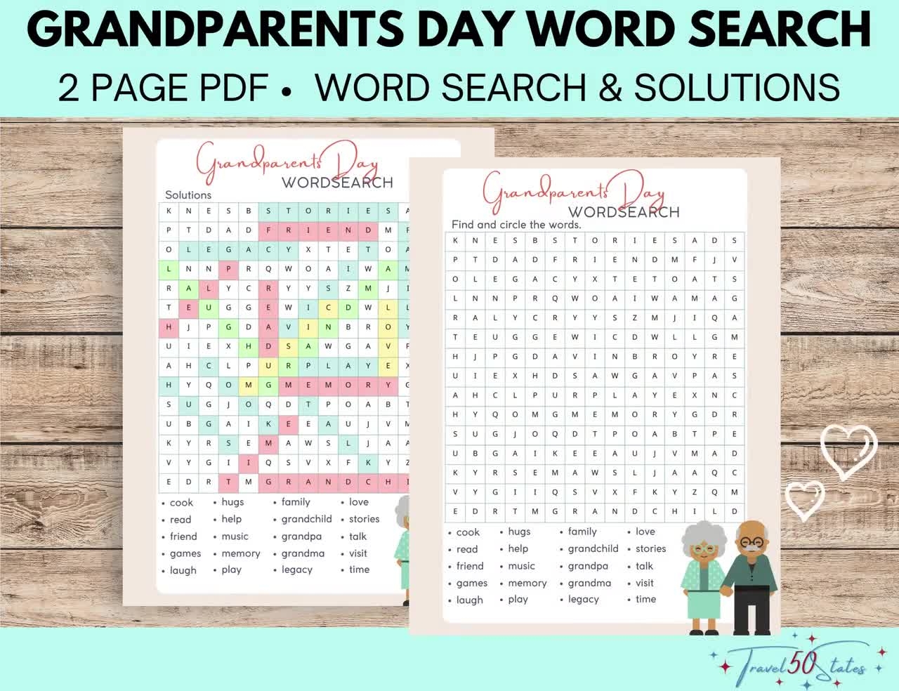 Grandparents Day Word Search Game Printable Family Activity For Grandchildren Grandparents US Letter And A4 Size Instant Download Etsy