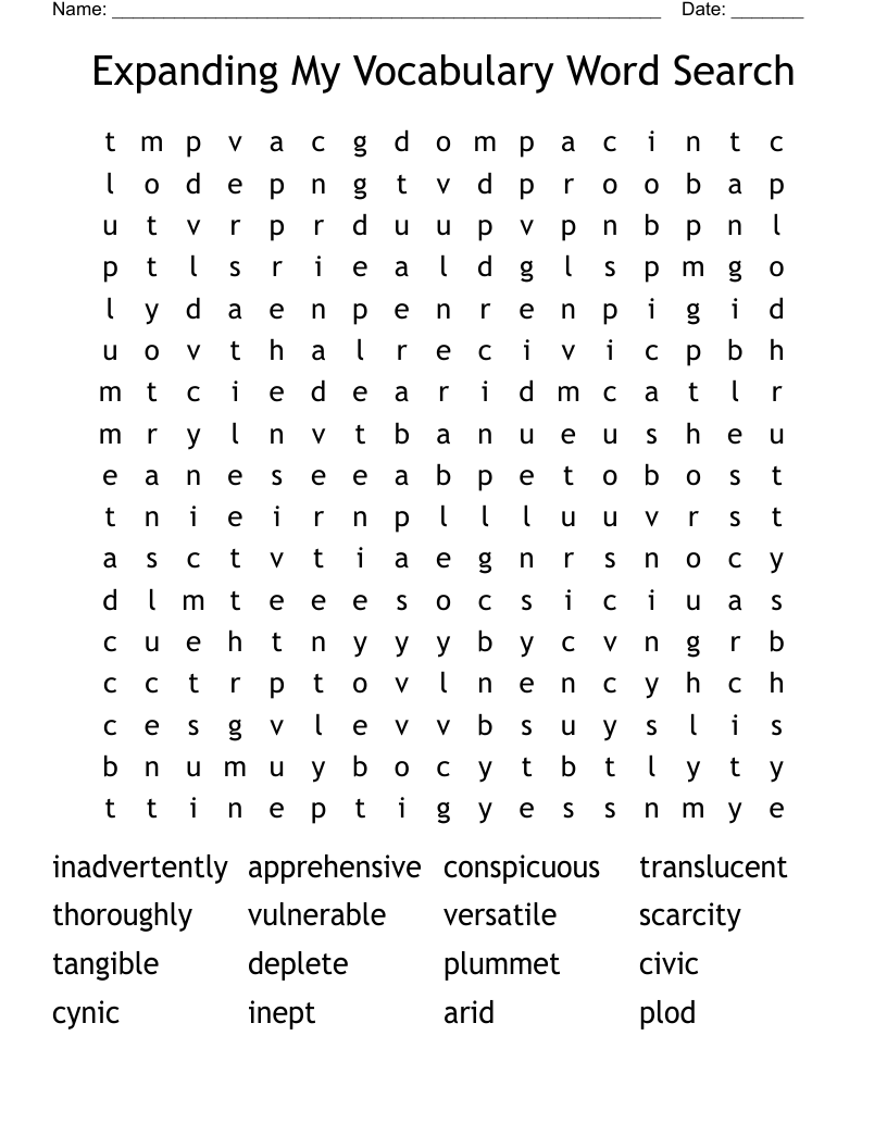 Expanding My Vocabulary Word Search WordMint