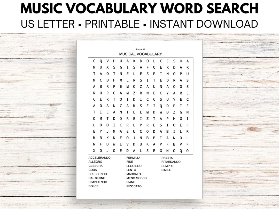 Music Vocabulary Word Search Worksheet PDF Etsy