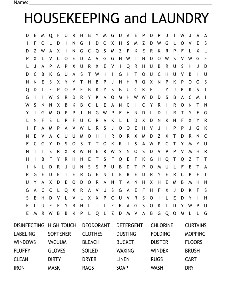 HOUSEKEEPING And LAUNDRY Word Search WordMint