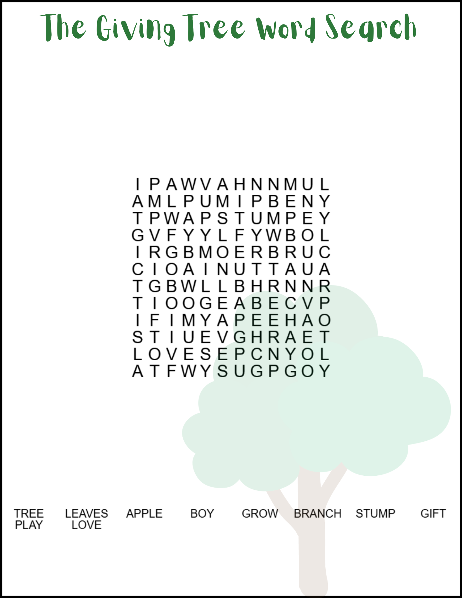 The Giving Tree Educational Printable Puzzle Fun Pack For Language Arts Crossword Word Search Mad Lib Classful