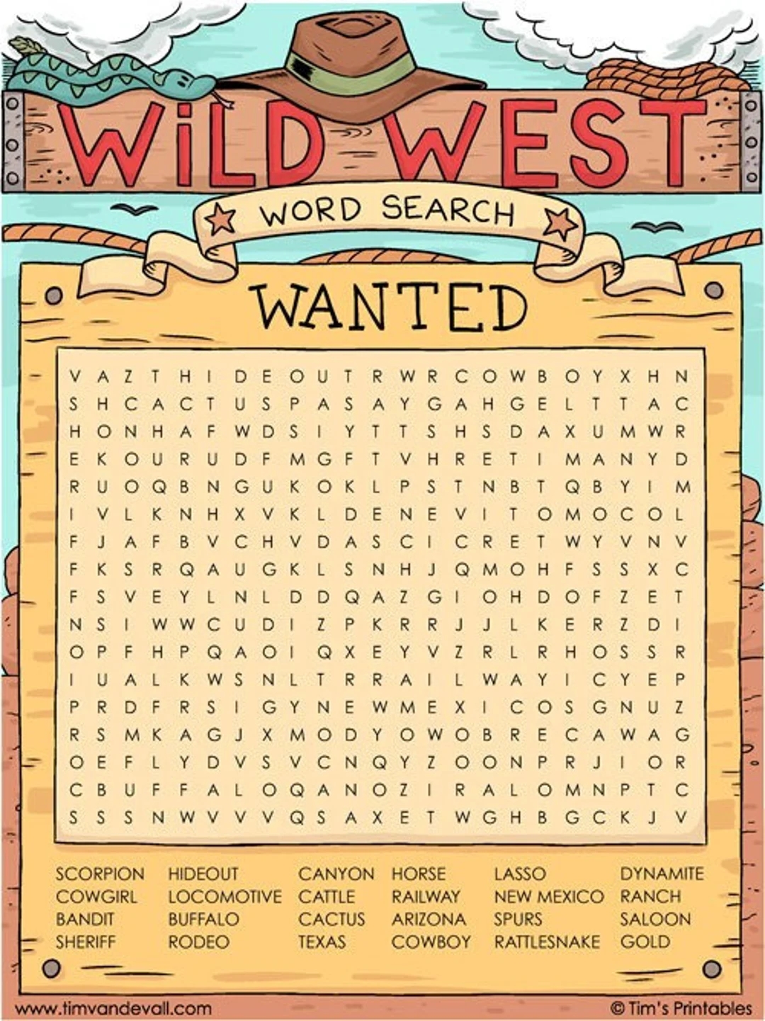 Not only is this word search a great way to keep your brain sharp, but it’s also a fantastic way to relax and unwind. So kick back, grab a cup of coffee, and dive into the world of the Wild West with this entertaining and educational puzzle.