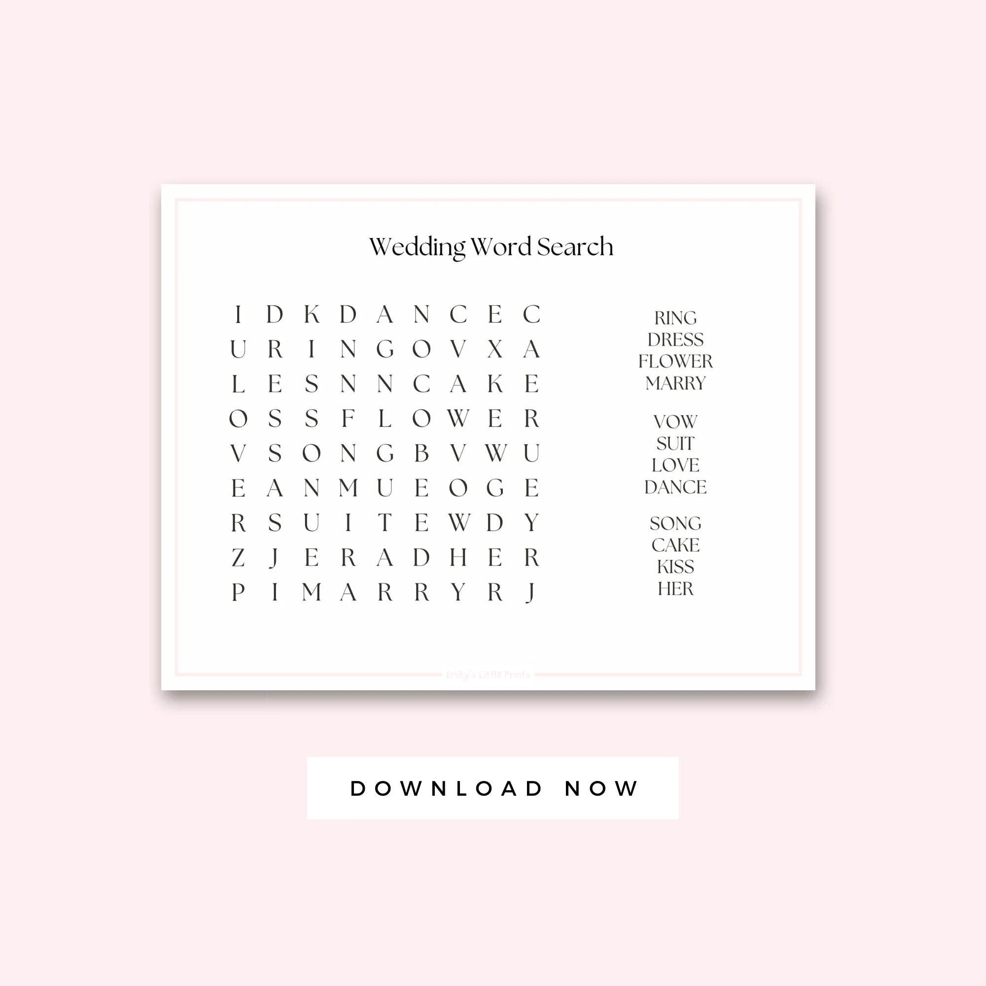 Minimalist Wedding Word Search Etsy