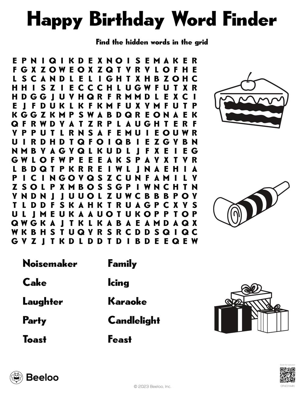 Birthday Word Search OhSoFestiveStudio