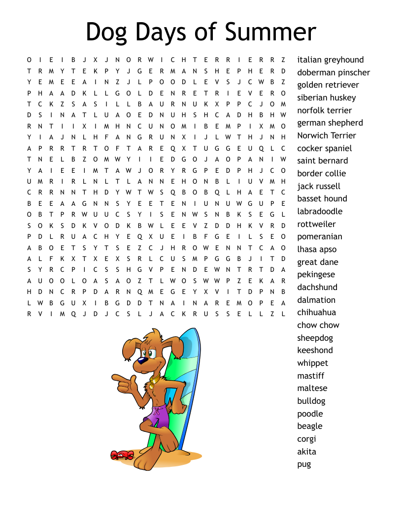 If you’re looking for a fun and engaging activity for your kids, look no further than a word search with a dog theme. Not only will it keep them entertained, but it will also help improve their vocabulary and spelling skills.