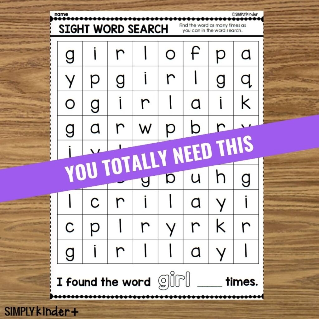 Girl Sight Word Search Simply Kinder Plus