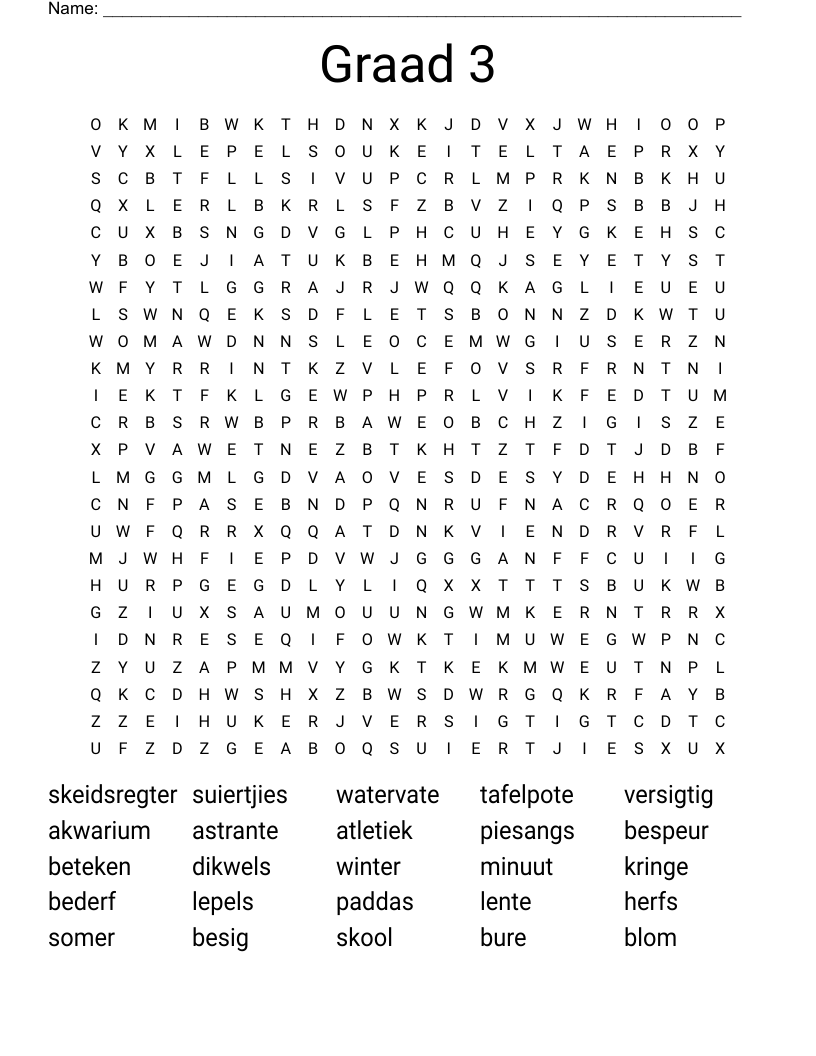 Graad 3 Word Search WordMint