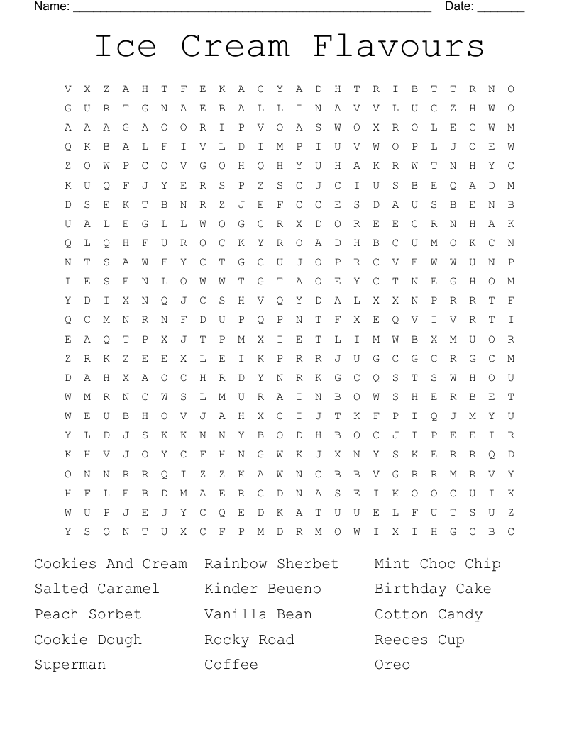 Ice Cream Flavours Word Search WordMint