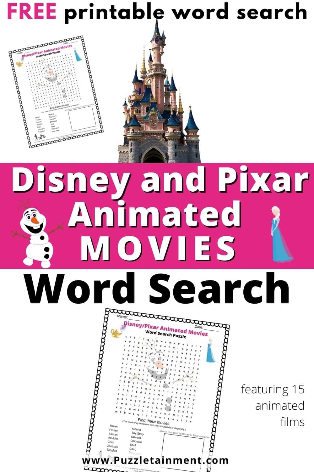 Disney Word Search Animated Movies From Disney Or Pixar unofficial Puzzletainment Publishing