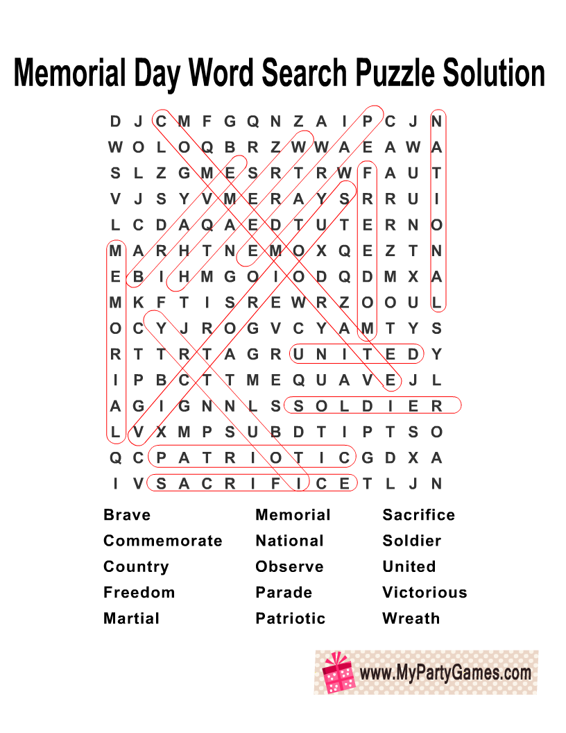 Free Printable Memorial Day Word Search Puzzle