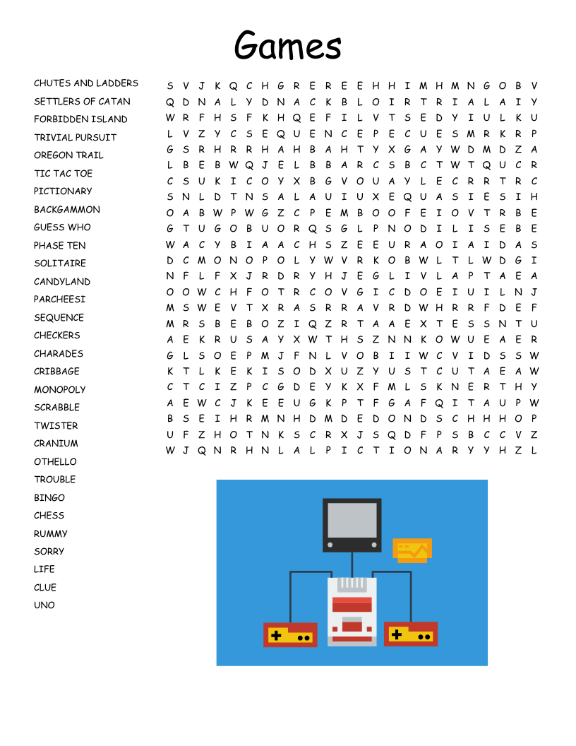 Board Games Word Search WordMint
