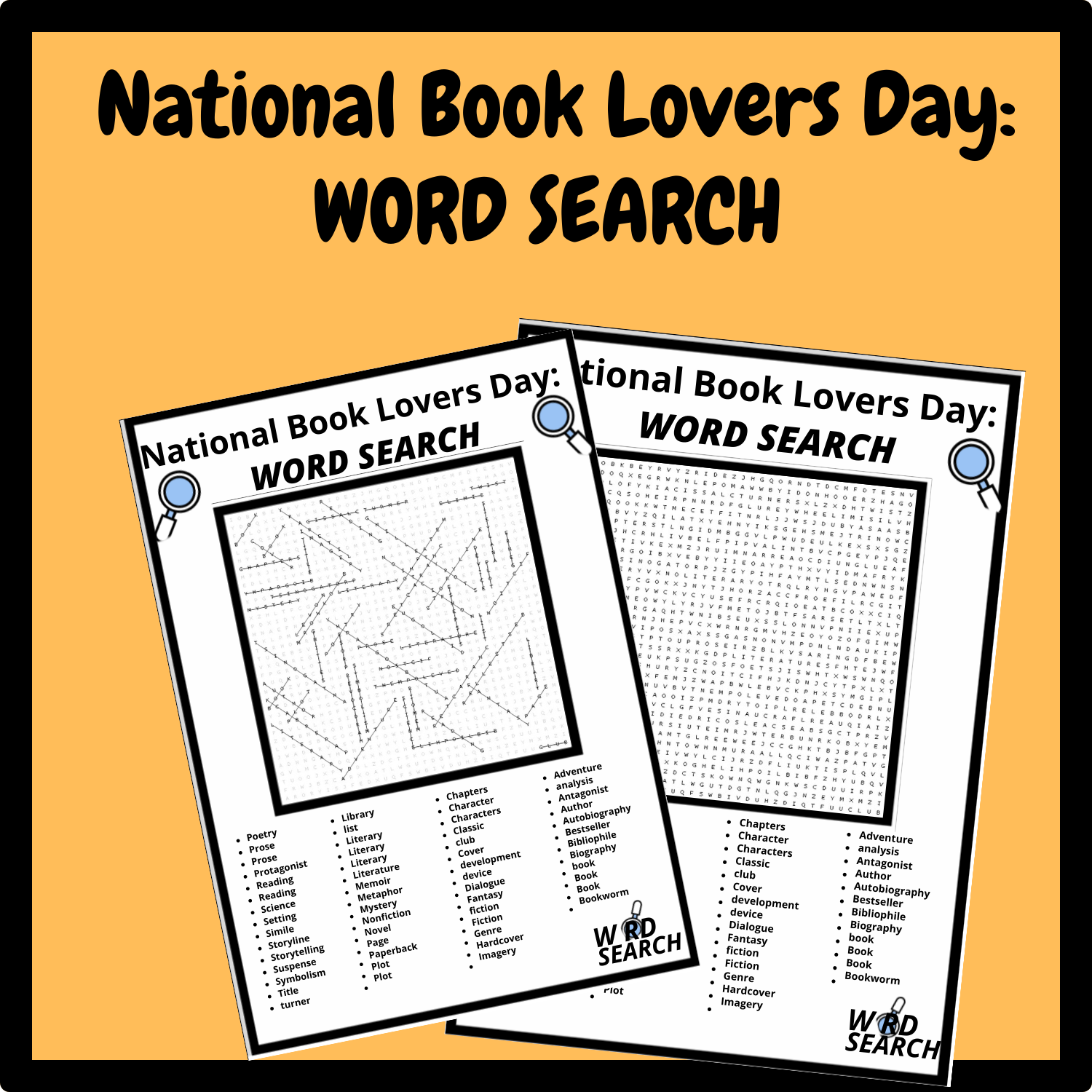 National Book Lovers Day WORD SEARCH PUZZLE ACTIVITIES Made By Teachers