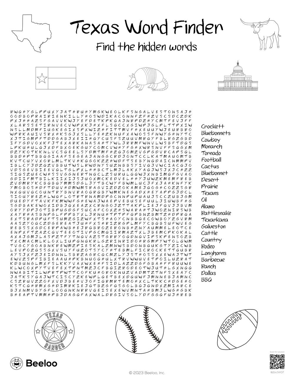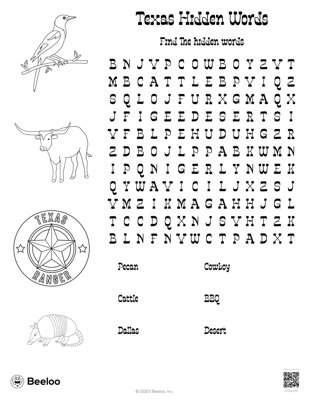 Texas themed Word Searches Beeloo Printable Crafts And Activities For Kids