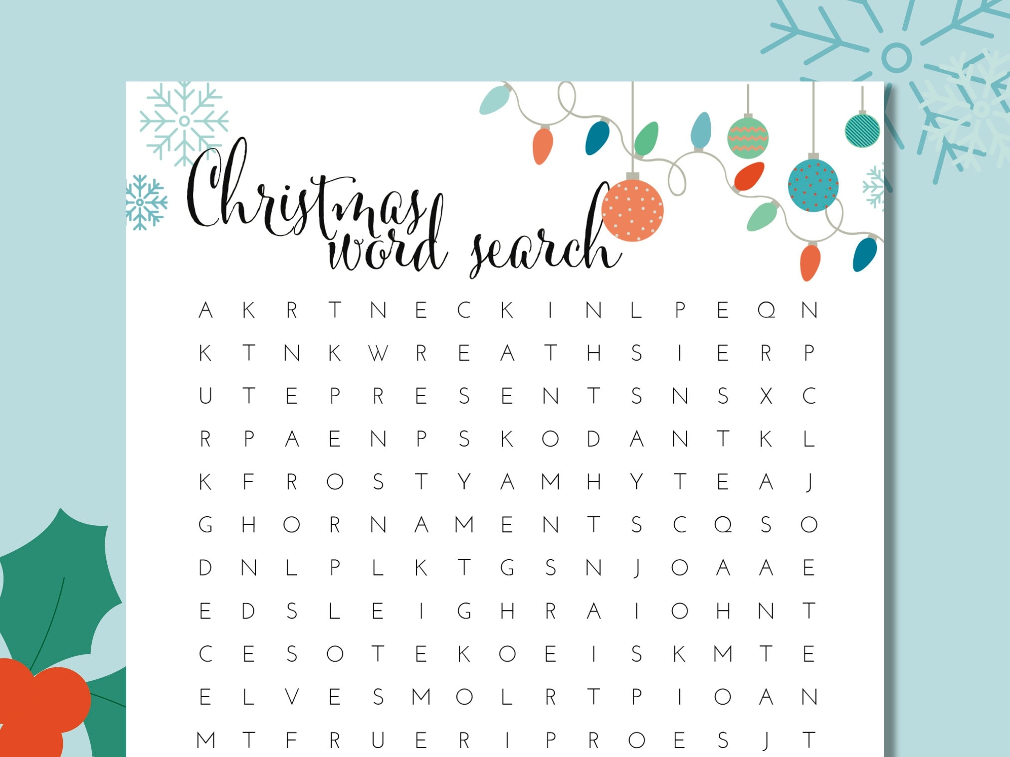 Festive Christmas Word Search Puzzle Holiday Fun For All Ages Printable And Enjoyable Etsy