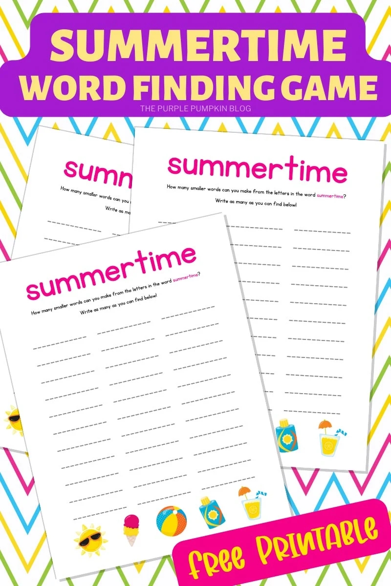 Free Printable Summertime Word Finding Game How Many Words