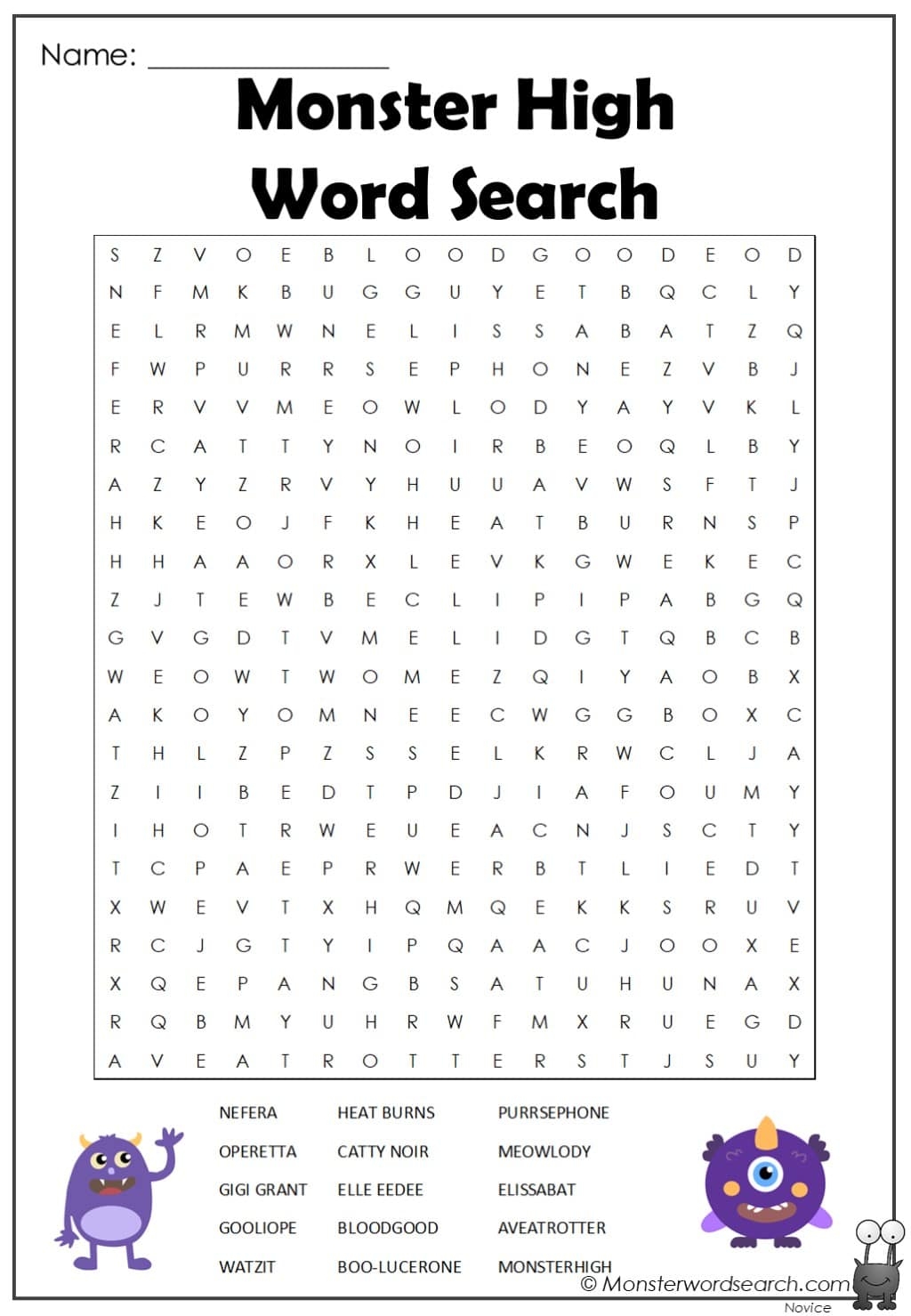 monster high word search monster word search
